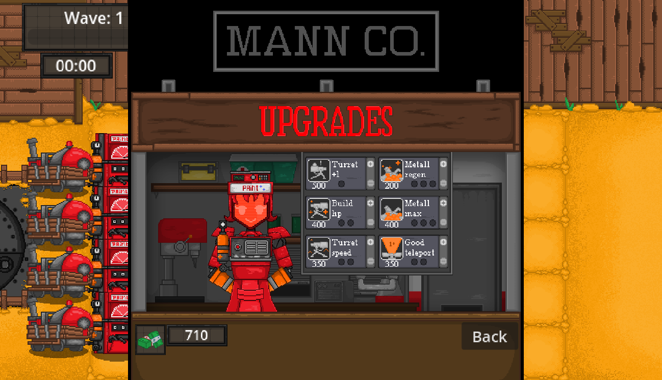 This is an attempt to adapt the Mann vs. Machine mode from Team Fortress 2, but with a small change: You only play as the Engineer, who defends the Mann Co.